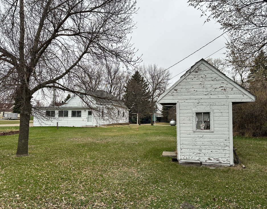 PRICE ADJUSTMENT! Be sure to check out this charming home nestled on two lots in the peaceful, rural town of Anamoose! This great community offers several amenities including a cafe, steakhouse, lumberyard, grain elevator, bar, auto shop, post office, greenhouse, and a Senior Citizens Center. Only a block from the park and right across the street from a coffee/gift shop, you will find this inviting home situated on a corner lot. The welcoming porch can be used to enjoy your morning coffee or to sit and visit with friends and neighbors. Inside, the open kitchen, with ample cupboards, has room for a dining table and chairs and the refrigerator and oven/range remain. Crisp white cupboards are in the laundry area and the washer and dryer convey with the property. There is also room for a dining table and chairs in the living room area, where natural light pours in through the two large picture windows. A spacious full bathroom is conveniently located on the main floor. The main floor bedroom with double closets is near a flex room that could be used as another bedroom, office, etc. Upstairs has lots of storage space plus a bedroom with a closet. The water heater (2016), furnace, and breaker box are in the basement, where there is even more storage space and the beginnings of another bathroom! The shingles on the home were replaced in 2017 and the 12 x 28 attached garage has a metal roof. There is a 20 x 26 outbuilding with 6 x 10 lean-to and a small shed. The owned propane tank provides the forced air heat. The two lots allow room for gardening, entertaining or future expansion. Property is being sold as is. Please schedule your viewing today to see how this property could work for you!