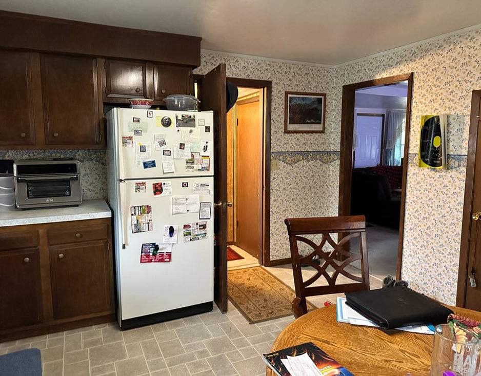 This cozy home is priced to sell! A nice deck on the south side opens up to an entry area with a stackable washer and dryer. The eat-in kitchen has sufficient cupboard space and the refrigerator and oven/range remain. The rest of the main floor consists of a bedroom, full bath, and a spacious living room. The upper level is accessed from the kitchen and could be great for storage or used however to best suit your needs. Propane forced air heat and central air make this home comfortable year round. Vinyl siding and asphalt shingles are about ten years old. There is a detached single garage with alley access. Home is being sold AS IS. Please schedule your showing today to see how this property could work for you!